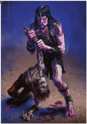 A thrax is a water vampire. Still afflicted by the sorcerous curse, it suffers from constant, unquenchable thirst, which it tries to satisfy by draining the fluids from the flesh of the living. Thrax victims become desiccated husks, and it’s said to be an agonizing death.