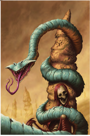Silk Wyrms are snakelike monsters covered in chitinous carapaces. They’re gifted with many natural weapons: bites laced with paralytic venom and the psionic powers of flight, camouflage, and mesmerism.