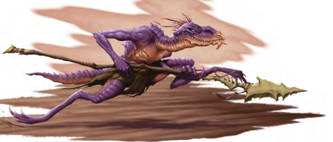 Silt Runners are basically Athasian Kobolds. While they’re not described as “savage”, all of the usual kobold slander is also present here. They’re small reptilian humanoids who are intensely xenophobic and whose entire society is based on raiding other humanoid settlements. They wield stolen weapons and wear bits of clothing and body parts from their victims as trophies, eating the rest.